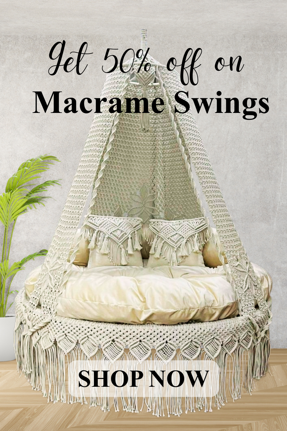 Baby Pink Macrame Swing with Mattress with Cushions