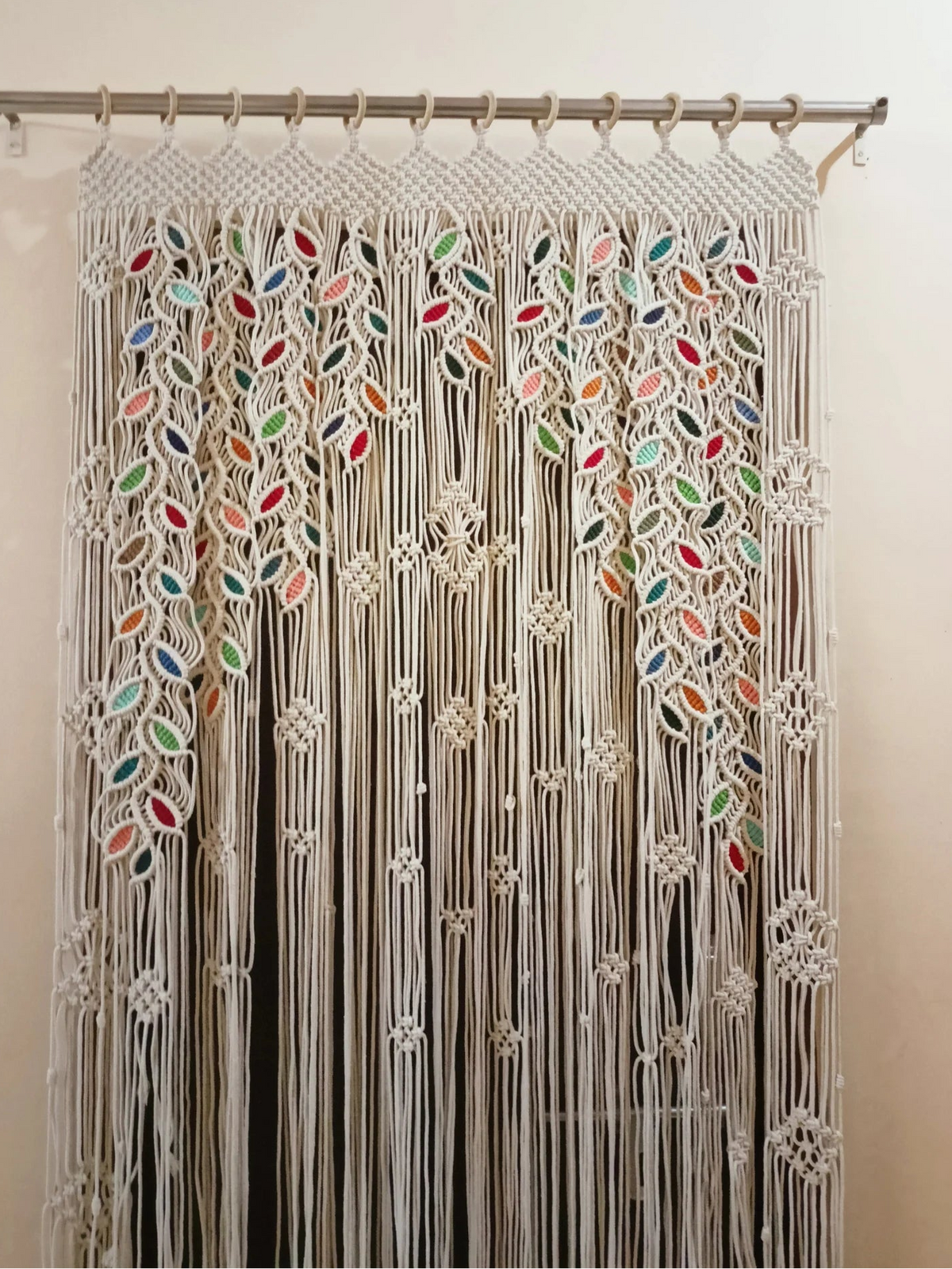 Give your home a touch of bohemian elegance with our handcrafted Macramé Curtains. These artisanal pieces combine timeless design with functionality, creating a warm and inviting ambiance for your home. Whether you’re aiming for a cozy boho vibe, a modern rustic look, or an eclectic aesthetic, our macramé curtains seamlessly blend functionality with style. Their semi-sheer design allows for natural light to filter through while maintaining privacy, making them an ideal choice for bedrooms, living rooms, or patios.