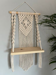 Macrame Wall Hanging with Wooden Shelf- Where Art, Function, and Boho Appeal Meet